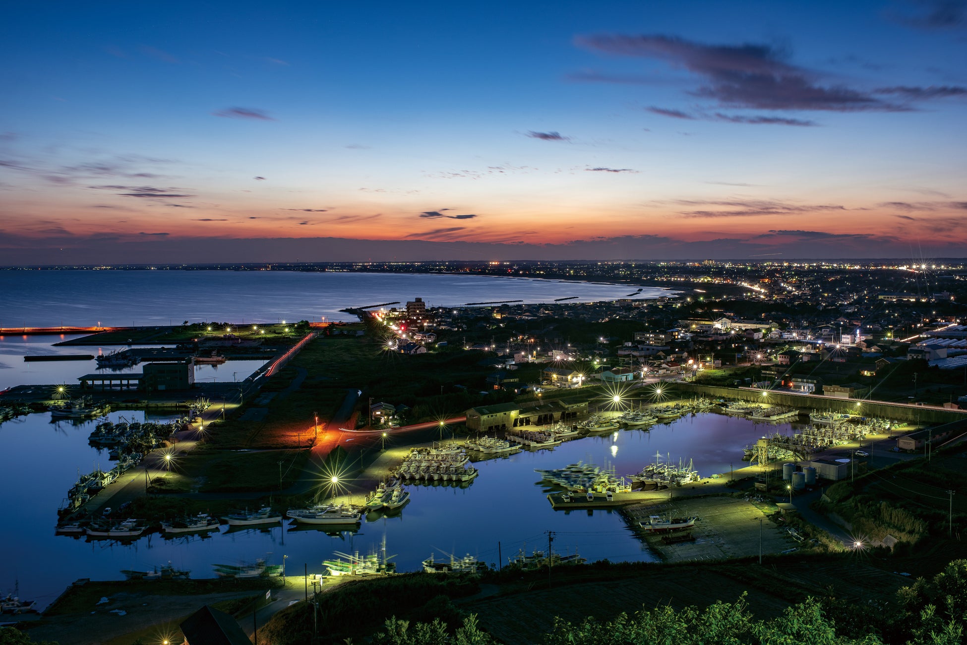 千葉県の北東部に位置する旭市は、都心から約80km圏内に広がるまちです。南は九十九里浜の雄大な海岸線に面し、北部はなだらかな丘陵地で「干潟八万石」と呼ばれる広大な穀倉地帯が続き、温暖な海洋性気候に恵まれています。この豊かな自然を背景に、全国有数の産出額を誇る農業や畜産業、飯岡漁港を拠点とする漁業が盛んに行われ、首都圏の食料供給を担う重要な地域となっています。また、九十九里浜を一望する刑部岬からの眺めは「日本の夕陽百選」「日本の夜景百選」にも選ばれており、その美しい景観は多くの人々を魅了します。