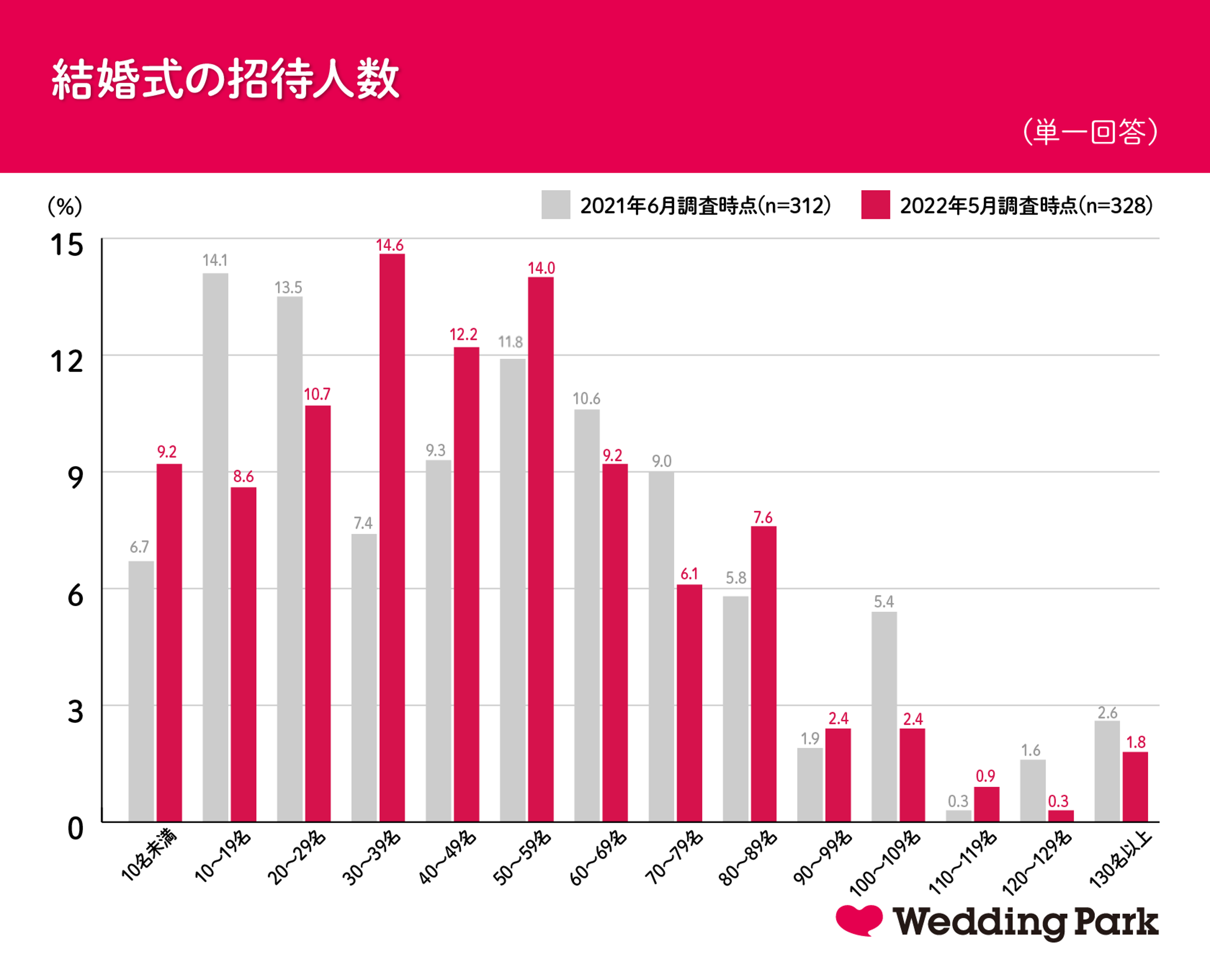 【新型コロナウイルス流行中の結婚式場探し動向調査 vol.4】緊急事態宣言下と比べ、招待人数は30名~59名の割合が増加 感染症対策よりも「プランナー・スタッフの印象」を重視する傾向