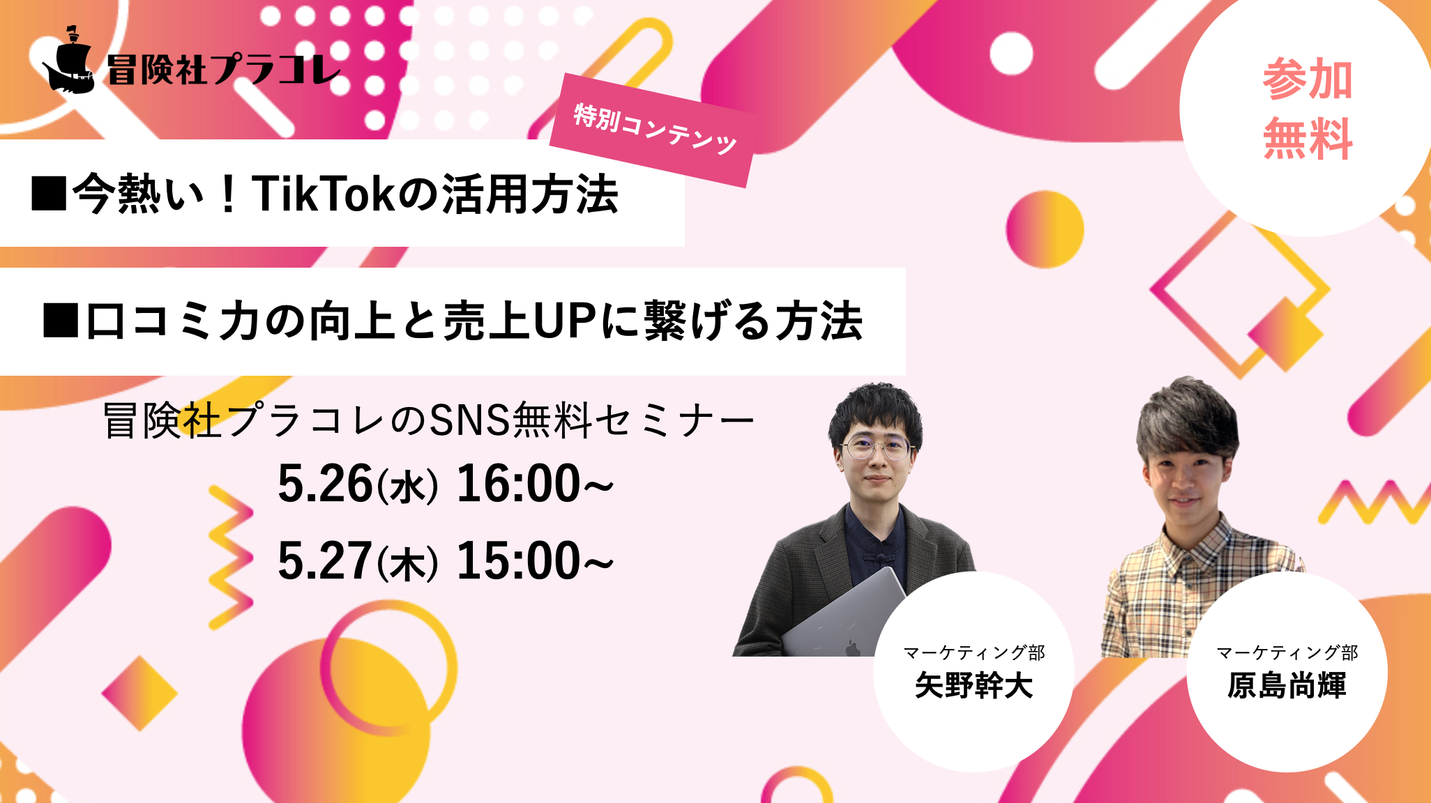 【ウェディング関連マーケ担当者必見】今熱いSNS!TikTokの活用方法とUGCでの口コミ力の向上と売上UPに繋げるSNS無料セミナー実施!