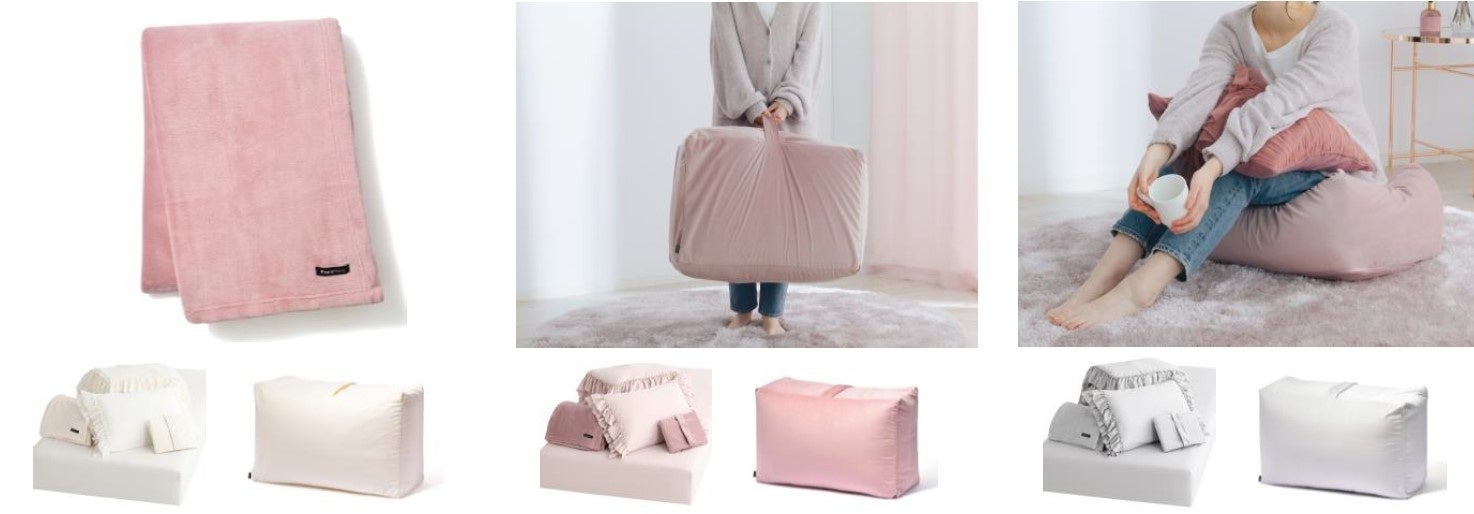 ブランケットとクッションになるふとん収納ケースをセットした「かんたん寝具セットプラス」も登場