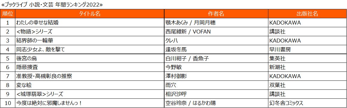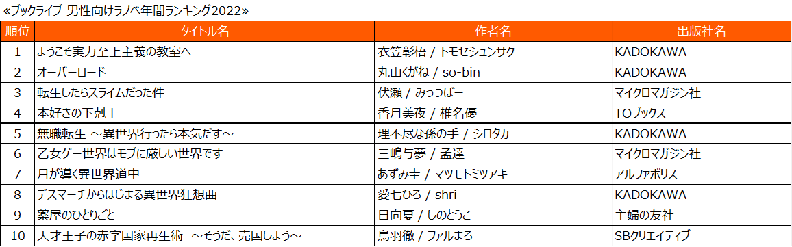 総合電子書籍ストア「ブックライブ」2022年の年間ランキングを発表