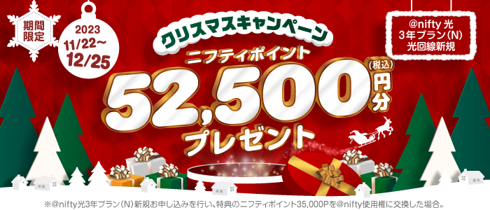 ニフティ、「クリスマスキャンペーン」を実施!52,500円分のニフティポイントをプレゼント