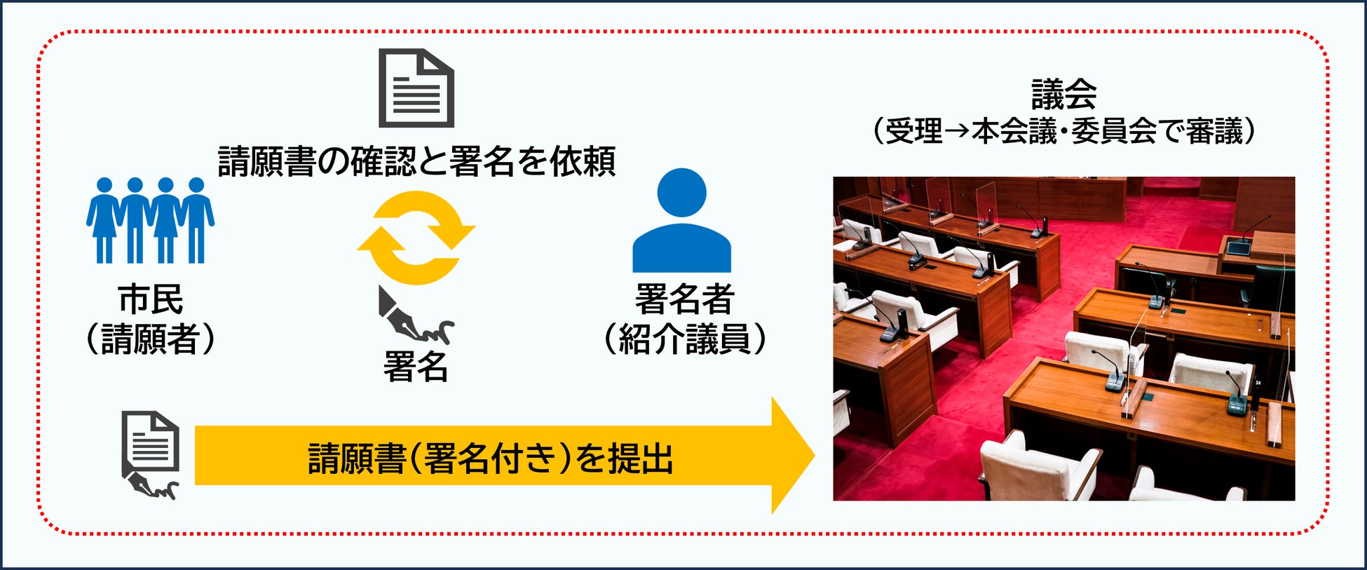 請願は市民や団体が行政に対して意見や要望を提出する手段の一つです。その手続きには、郵送や持ち込みでの内容の調整からハンコでの押印など、煩雑で労力を要するフローが多く存在します。「請願のデジタル化」により請願書の確認と署名がオンラインで完結できるようになるため、より簡単・スピーディに請願の審査が可能となります。