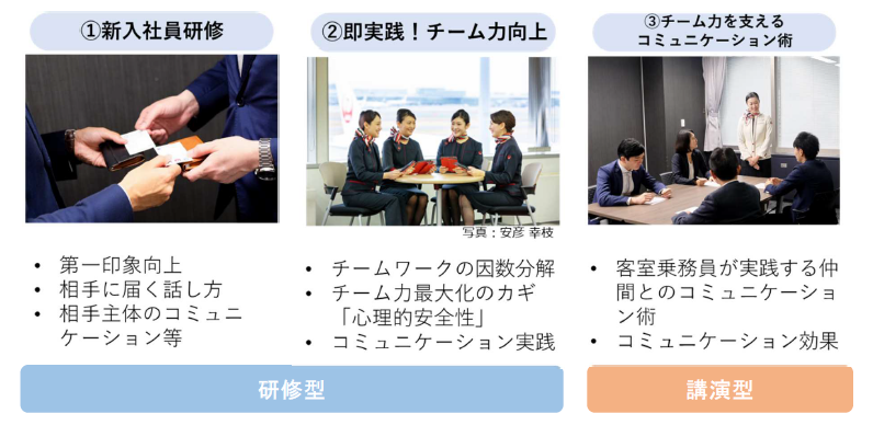 TKPとJALは、TKPの全国に広がる施設ネットワークおよび研修実施におけるロジスティクスと、JALの長年の国際線運航経験で培ったグローバルレベルのホスピタリティやコミュニケーションのノウハウを活かし、今年8月よりコミュニケーションの課題を解決する研修パッケージを提供しております。