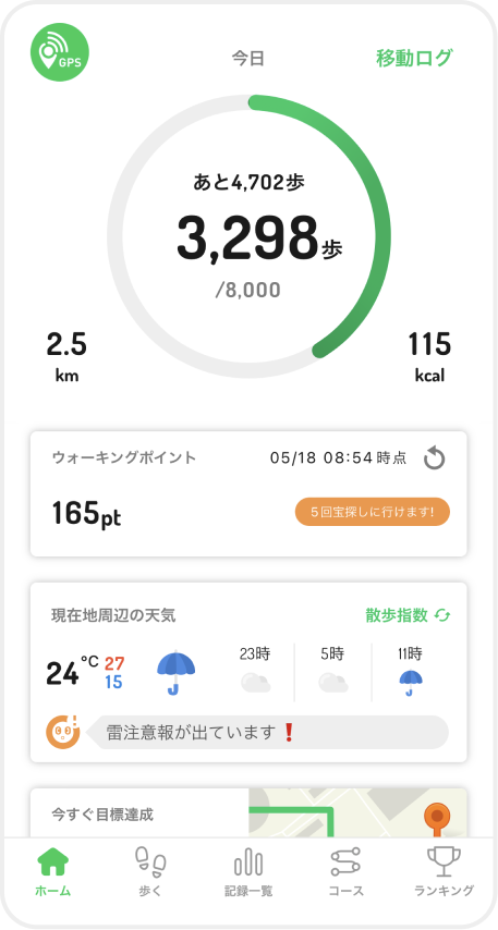 歩くことで健康管理をしたい方や、ウォーキングや散歩など、歩くことに興味がある方に向けた、日々楽しく歩くことをサポートします。歩数・移動距離・消費カロリーを自動計測しグラフで振り返るといった様々な機能をご利用いただけます。