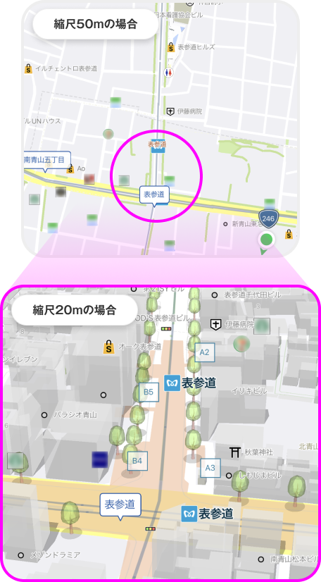 今回の対応により、並木道の位置を確認できるようになるため、建物のかげと、木々由来の日陰も考慮しながら、炎天下でも快適に歩けそうな道を判断する際の一助としてご活用いただけます。
