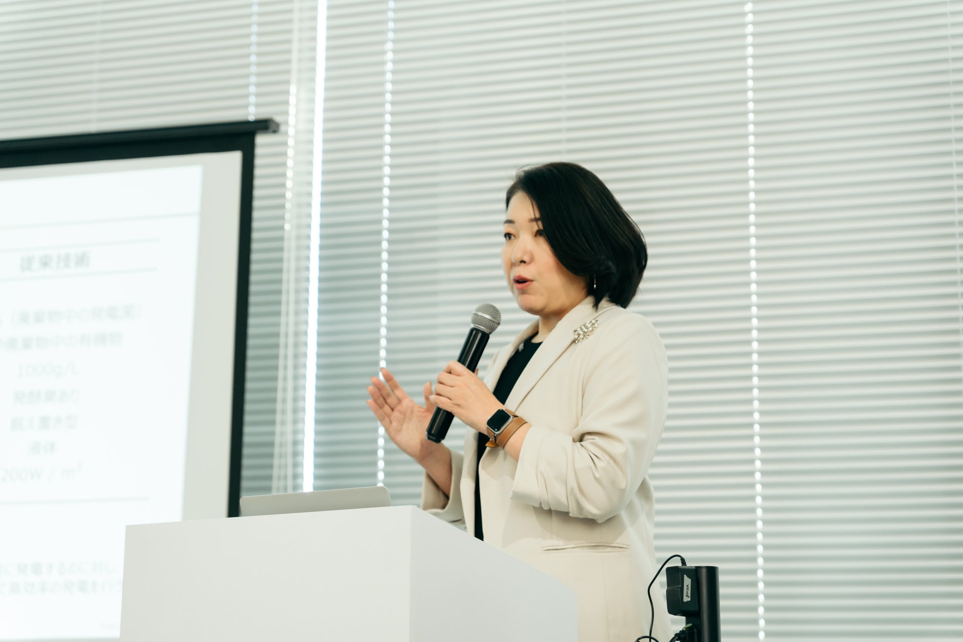 女性ピッチコンテストではライフやビューティーに関する提案が多く見られる中で、これまで女性のピッチコンテストには出てこないようなディープテックに関する骨太な提案でした。新エネルギーに関する事業は世界でも通用する課題であり、それを女性がコアとなって推進していることが評価されました。