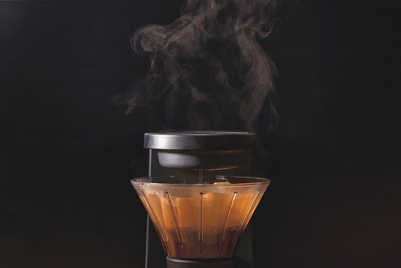 フィルターとガラスサーバー部分はむき出しかつ透明のデザインを採用。粉の膨らみ、立ち昇る香りなど、コーヒーを作る過程の全てをライブで楽しめます。