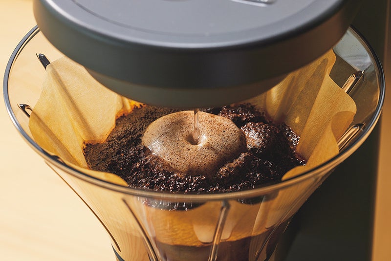 挽いた豆全体にお湯をしっかりとなじませ豊かな風味を引き出す「浸漬蒸らし」を搭載。