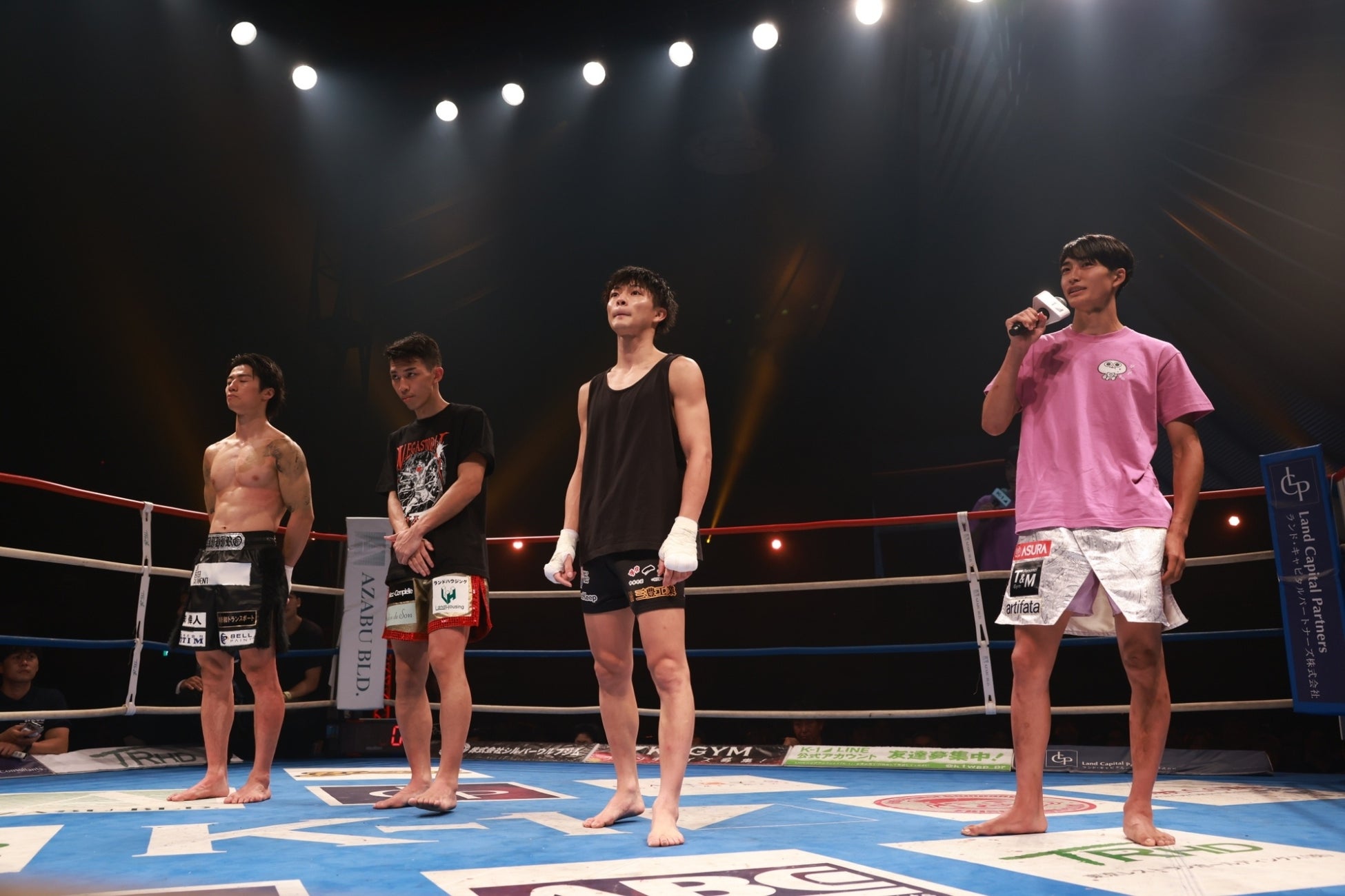 KO勝ちを決めた璃明武は「強い選手と分かっていたんで、思い切りやろうと思っていたんですけど、相手の気持ちを折れていい勝ち方が出来てよかったです。9月決勝あるんで、また強くなって戻ってきます。応援ありがとうございました」と挨拶しました。