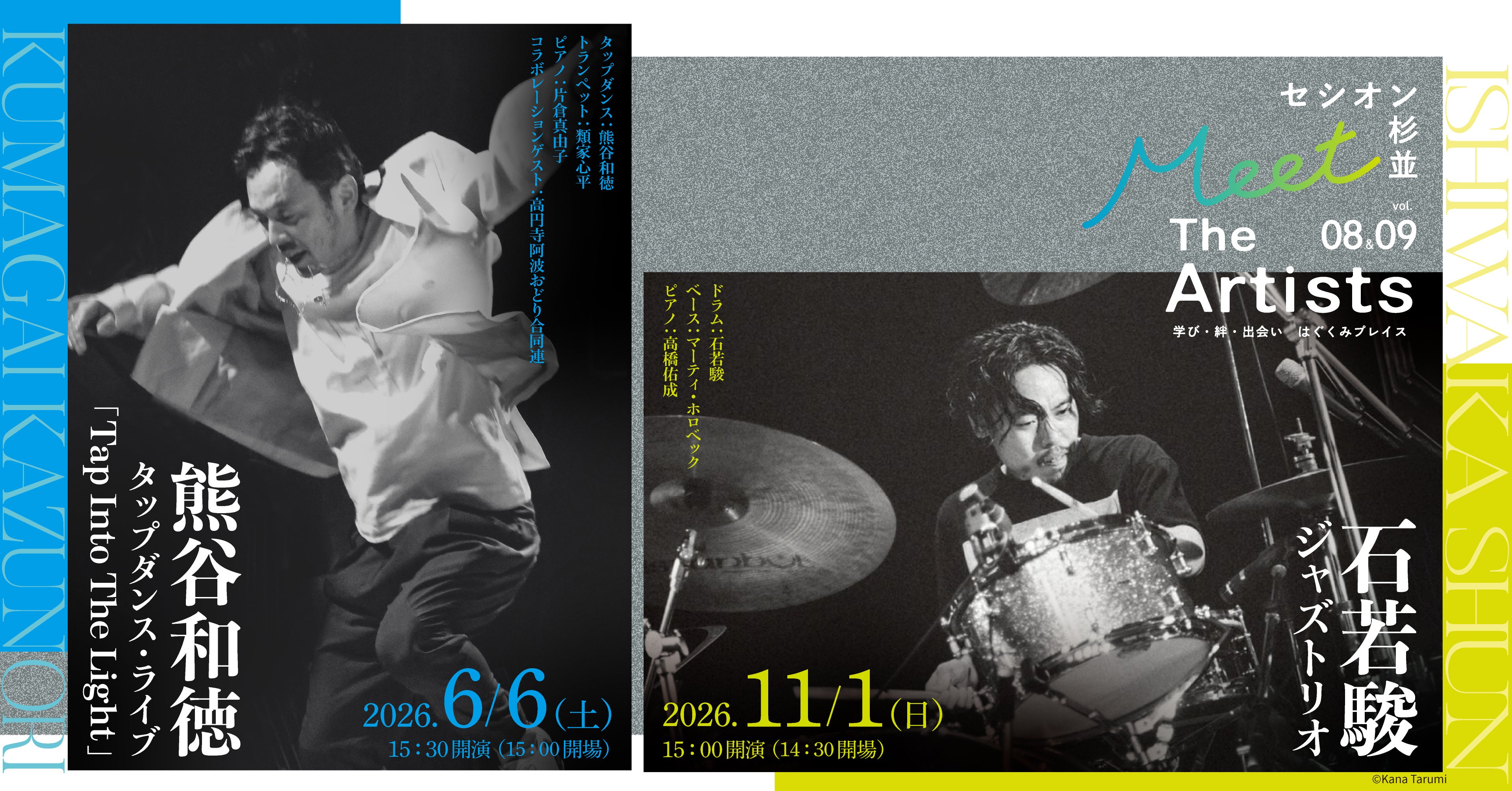 セシオン杉並 Meet The Artists vol.8「熊谷和徳」& vol.9「石若駿」の公演チケットをいち早く、 良席を指定しながらお得に購入できるセット券です。※両公演共に同じ座席で鑑賞いただけます。