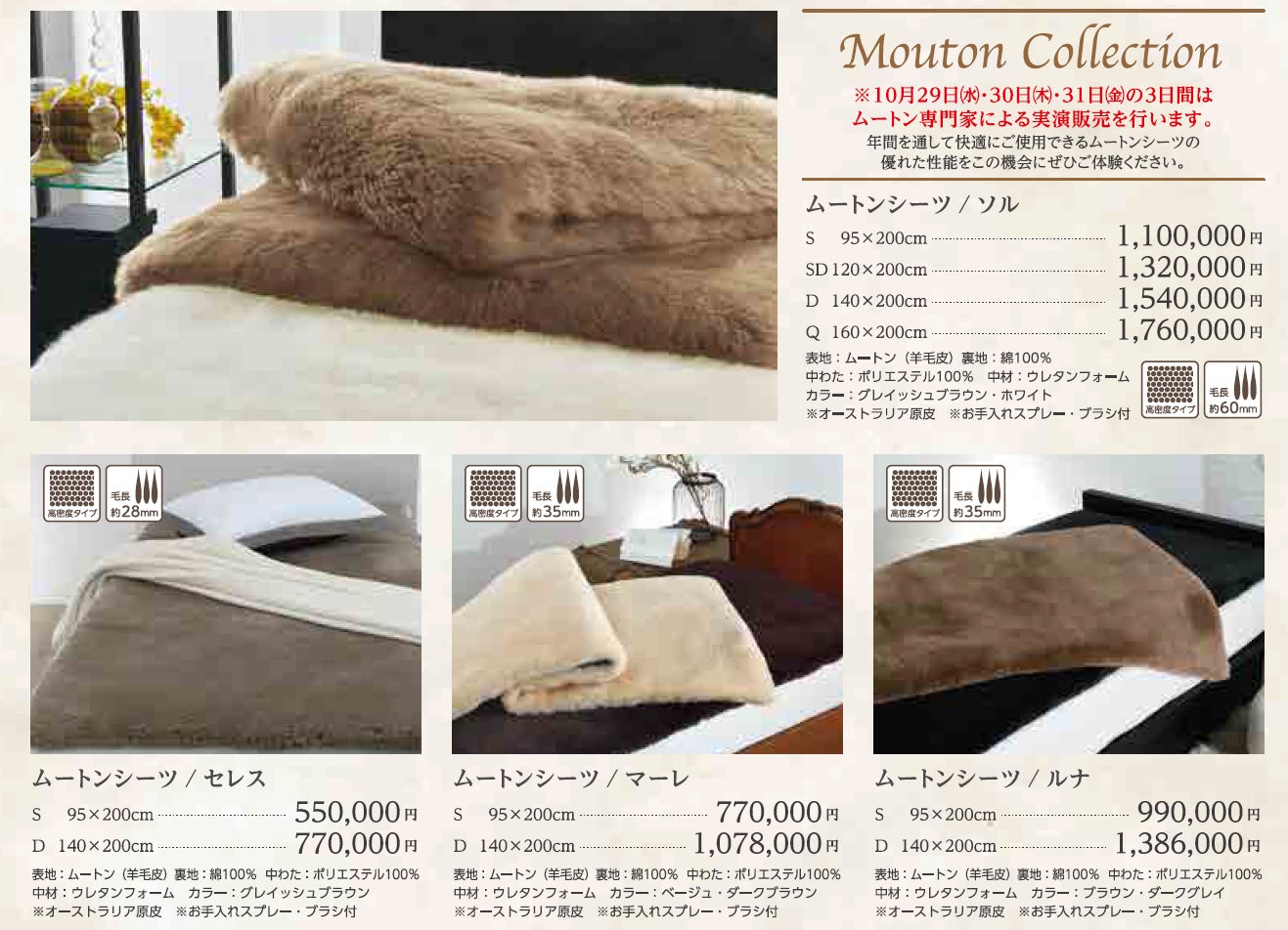 ※ムートン実演販売は10月29日(水)から10月31日(金)の3日間