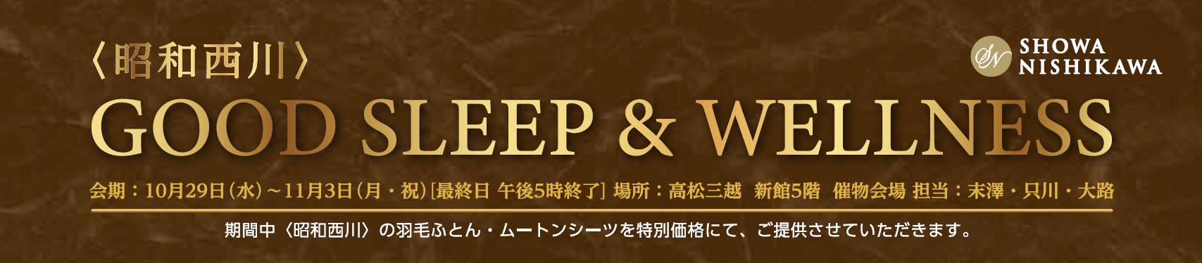 <昭和西川>ムートン、羽毛ふとん、MuAtsu(ムアツ)が一堂に!高松三越新館5階催物会場にて「GOOD SLEEP&WELLNESS」開催 会期:10月29日(水)~11月3日(月・祝)