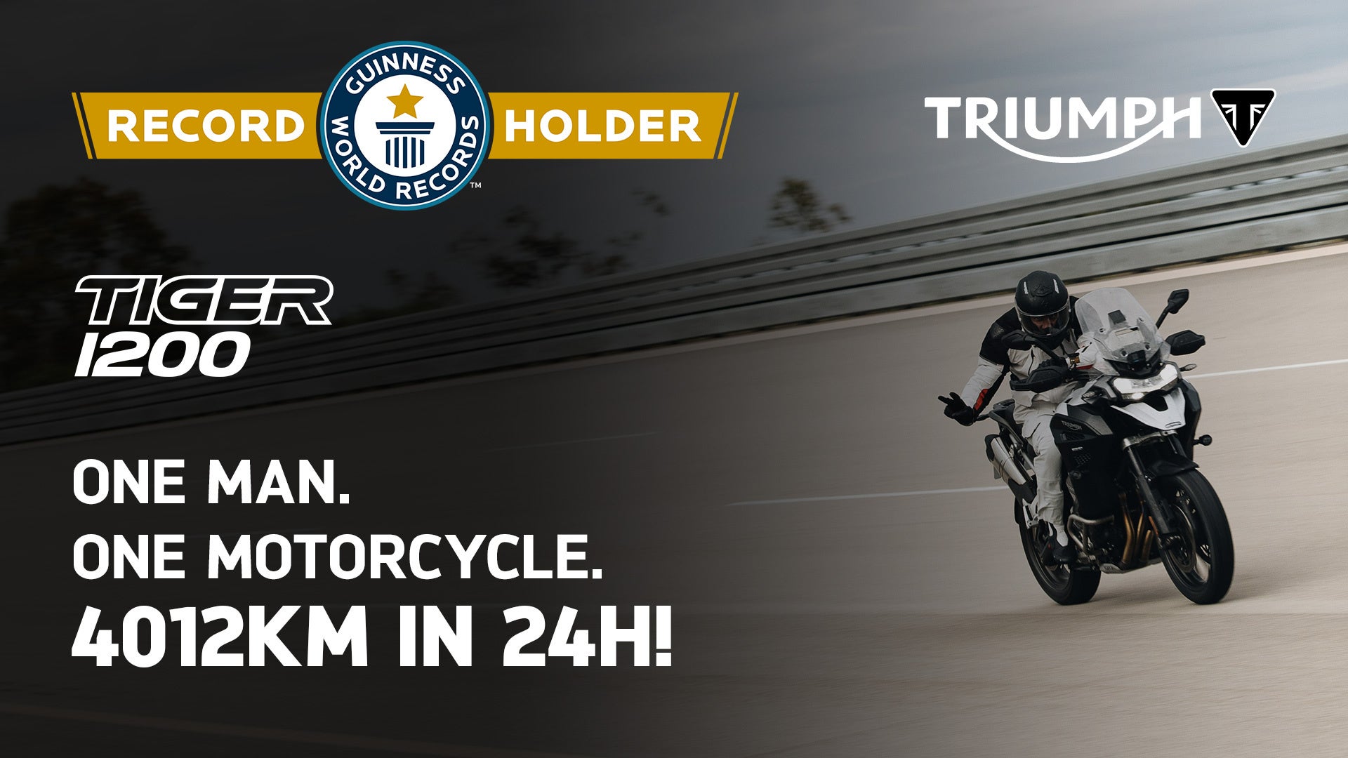イヴァンはイタリア、ナルドテクニカルセンターのハイスピードリングでTiger 1200 GT Explorerを駆り、24時間で4012kmを走行、これまでの記録3406kmに600km以上の大差をつけました。