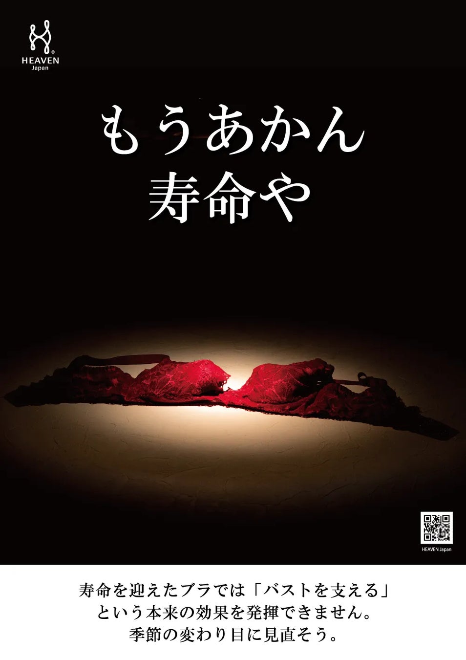 一人ひとりの女性の心と体に寄り添う「適正下着®」の開発から販売までを行う株式会社HEAVEN Japan(所在地:大阪府河内長野市、代表取締役:松田崇)は8月20日より、クスッと笑いながらただしい下着の知識が学べる下着啓蒙ポスター「ヘブンジャパン?知らんけど。」ポスター(第2弾・全8枚)を自社オンラインショップにて公開いたしました。下着の知識は身につける機会がほとんどなく、だれに相談していいのかわからないことも多く、よく聞く疑問やあらぬ誤解を解消するとともに、もっと下着のことを知ってほしいという想いから制作しました。
