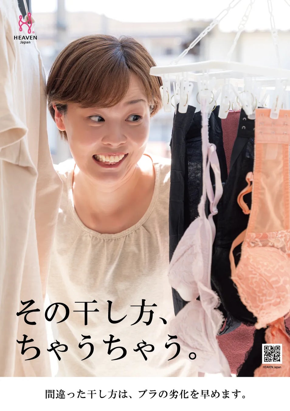 サイズの選び方や下着の寿命、ただしい下着の干し方など、女性が当たり前に身に着けている下着について、知らないことは意外と多いもの。また、下着はふだん話しづらい・聞きづらいなどの理由から、いわゆる「よくある誤解」をされていることも多くあります。そこでヘブンジャパンでは、下着についてもっと知ってほしい!ただしい知識を身につけて、一人ひとりのお客様にぴったりの下着を選んでほしい!という願いを込めて、「絶対このポスター見たら勉強なると思うわ、知らんけど。」という、大阪弁を用いたユニークなポスターを8枚制作いたしました。ちなみにデザイン制作から、撮影、コピー制作まで、すべてヘブンジャパン「アゲちゃって委員会(末尾に説明あり)」スタッフが担当しています。体を張ってモデルもしています。