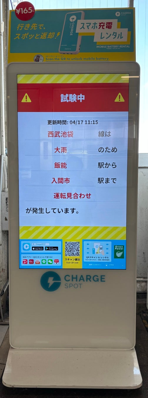 モバイルバッテリーシェアリング「ChargeSPOT」西武鉄道の「急告板」として提供開始