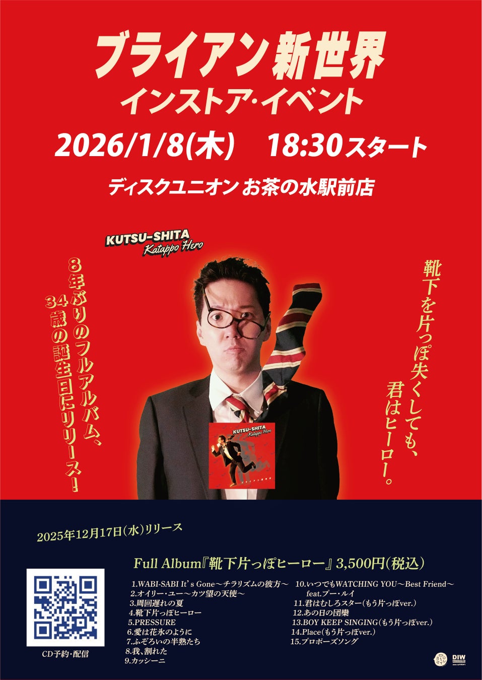 イベントタイトル:ブライアン新世界 フルアルバム「靴下片っぽヒーロー」発売記念インストアイベント