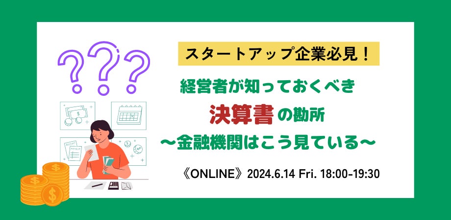 【スタートアップ企業向け】『金融機関が気にする決算書の勘所』を知れるオンラインセミナーを6月14日(金)に開催(参加無料)
