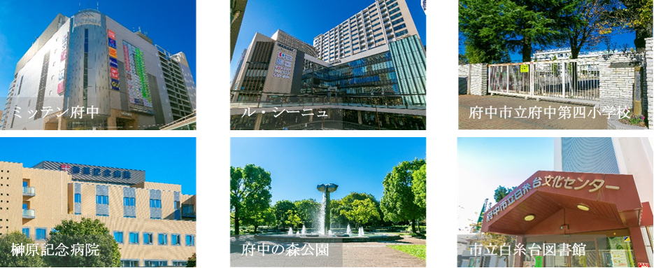 当物件は南側が住宅エリアとなっている為、南向き中心の配棟を行うことで眺望に恵まれた暮らしを実現いたします。また、京王線「東府中」駅からの導線では、サミットストア府中若松店やニトリ府中店があり、毎日の暮らしの中でも充実した生活利便の中で過ごすことができる物件です。
