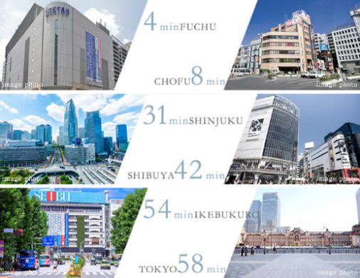 京王線「東府中」駅徒歩11分、「多磨霊園」駅徒歩7分。2駅が利用でき、最寄り駅からは「新宿」駅31分・「渋谷」駅42分と都心へスピーディーにアクセス可能。さらには、「府中」駅直通4分・「調布」駅直通8分と進化する2つの都市も身近にしています。この優れたアクセスが、ライフシーンにゆとりを生み出し、日々に軽やかなリズムを与えます。