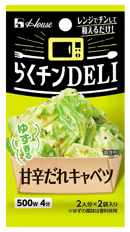 食材を「カット」・「レンジ」・「和える」の3ステップ!メニュー専用シーズニング「らくチンDELI」<甘辛だれキャベツ><なすの中華あえ>新発売