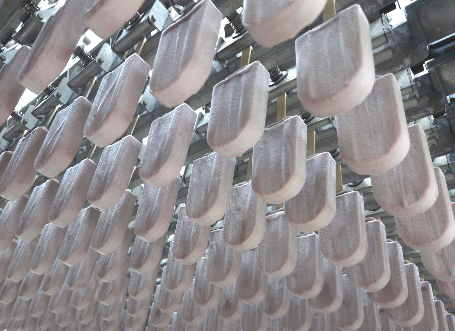 1973年の発売から長年お客様に愛され続ける『あずきバー』は、「ぜんざいを凍らせたようなアイスができないか?」というアイデアをもとに開発した当社の看板商品です。生豆の選別・洗浄・炊き上げ・冷却・充填まで自社で行い、あずきの風味と粒感が楽しめるアイスです。