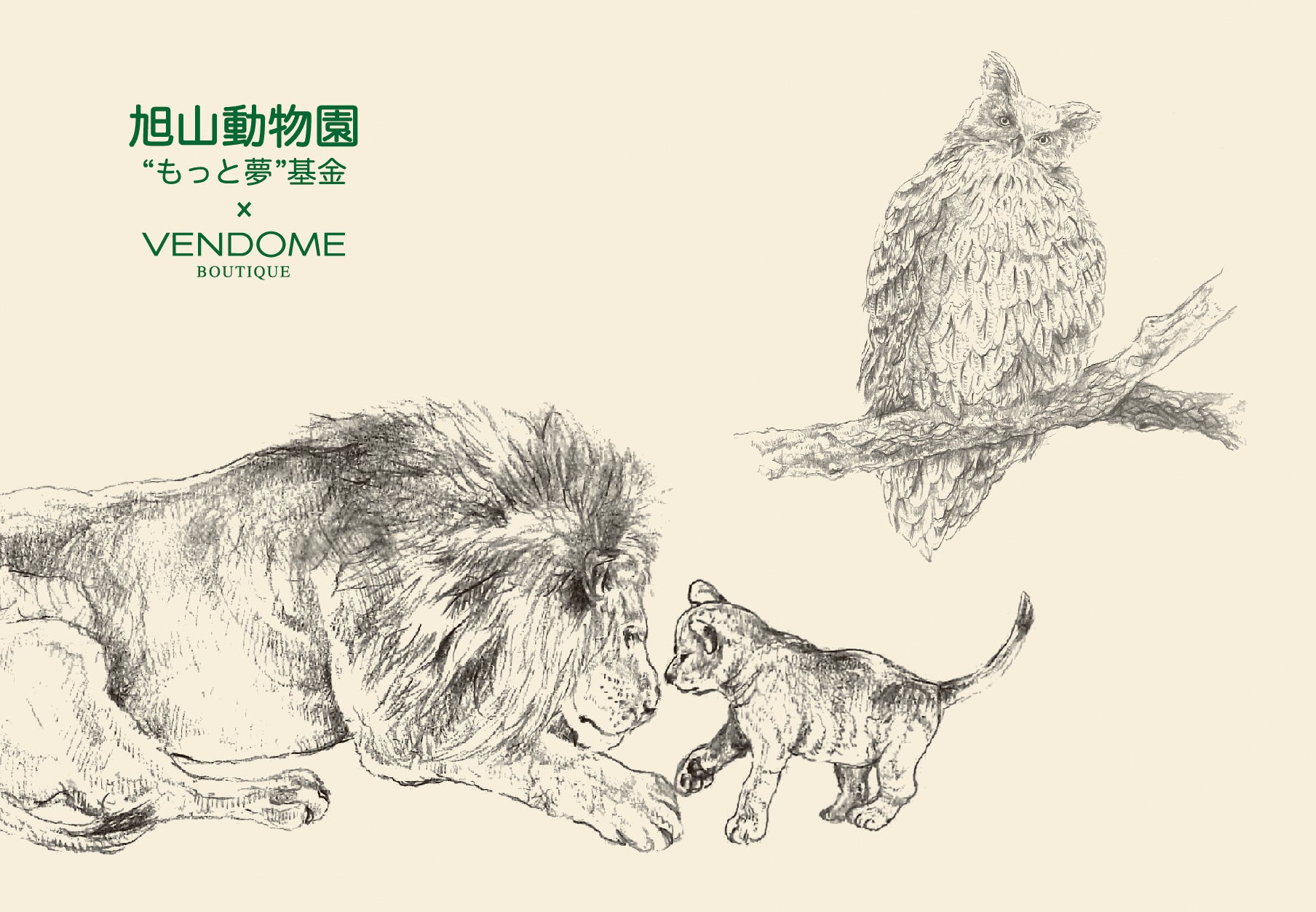 旭山動物園では動物の素晴らしさを伝えたいという夢のもと、動物が魅力や能力を発揮するための施設設備や改修、絶滅危機にある動物たちの繁殖、動物種の保存のために2007年、「あさひやま "もっと夢" 基金」を設立。この取り組みをヴァンドームブティックも応援。コレクションの売上の一部は「あさひやま "もっと夢" 基金」に寄付いたします。 |