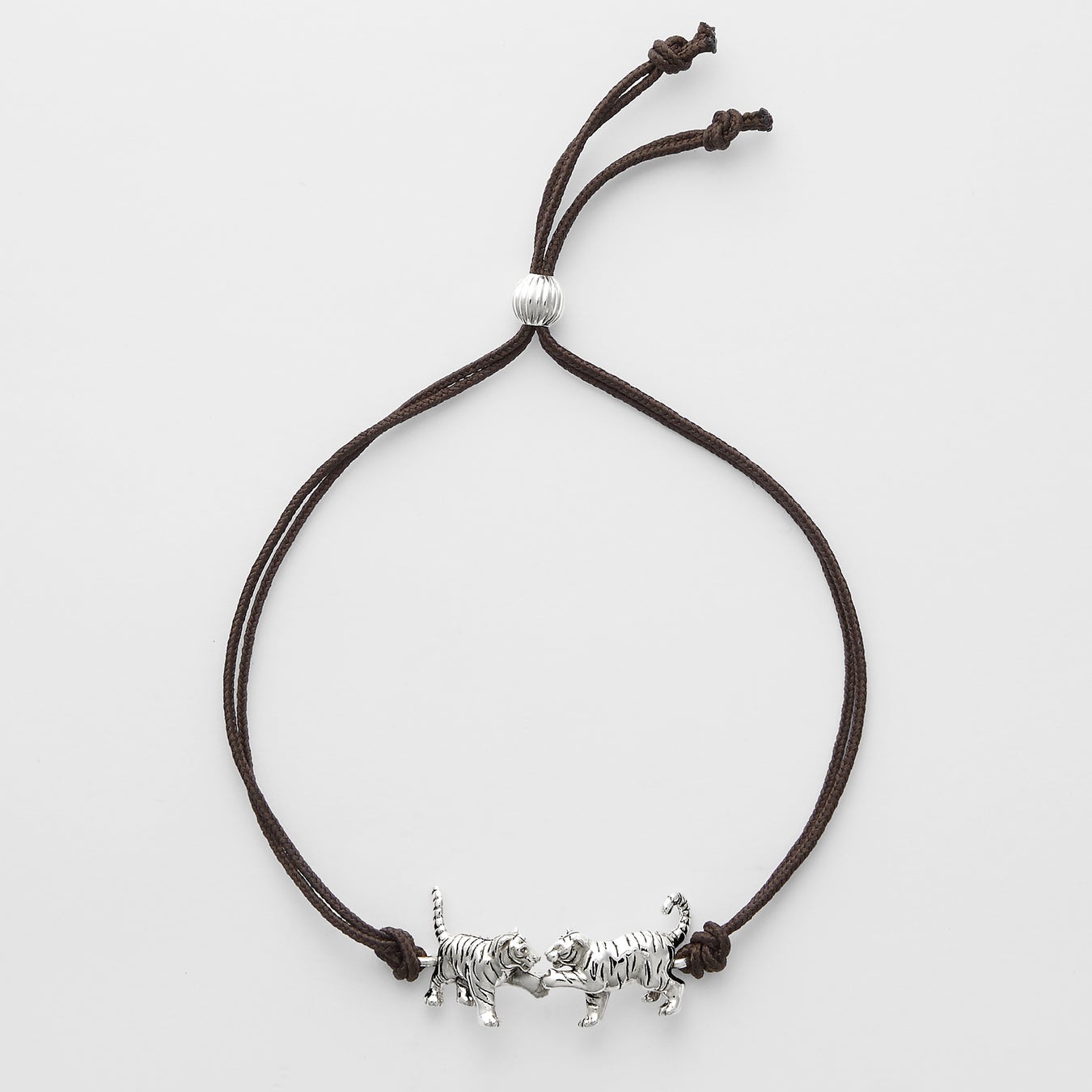 園内でじゃれあい、元気に遊ぶ愛嬌たっぷりの瞬間をとらえたアムールトラのコードブレスレット。