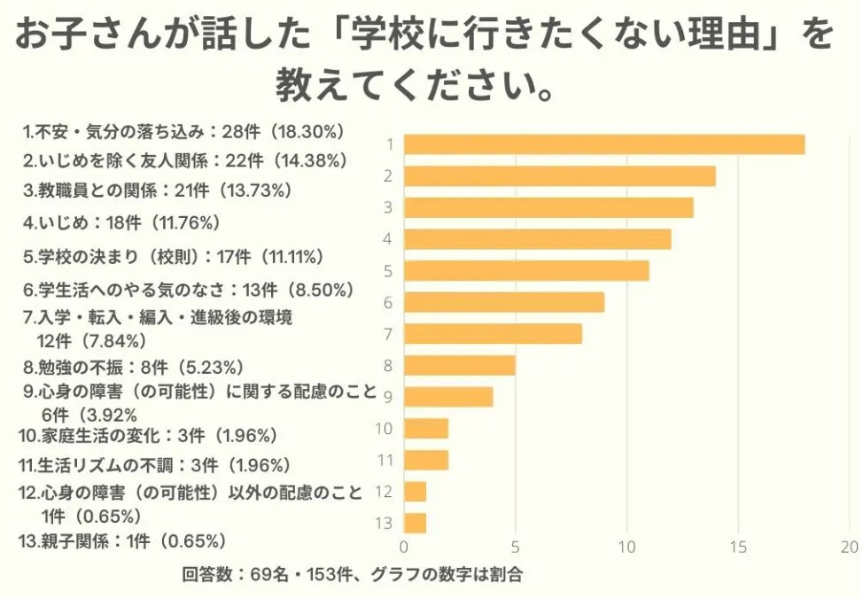 学校に行きたくない理由〜「不安・気分の落ち込み」が一番多い〜