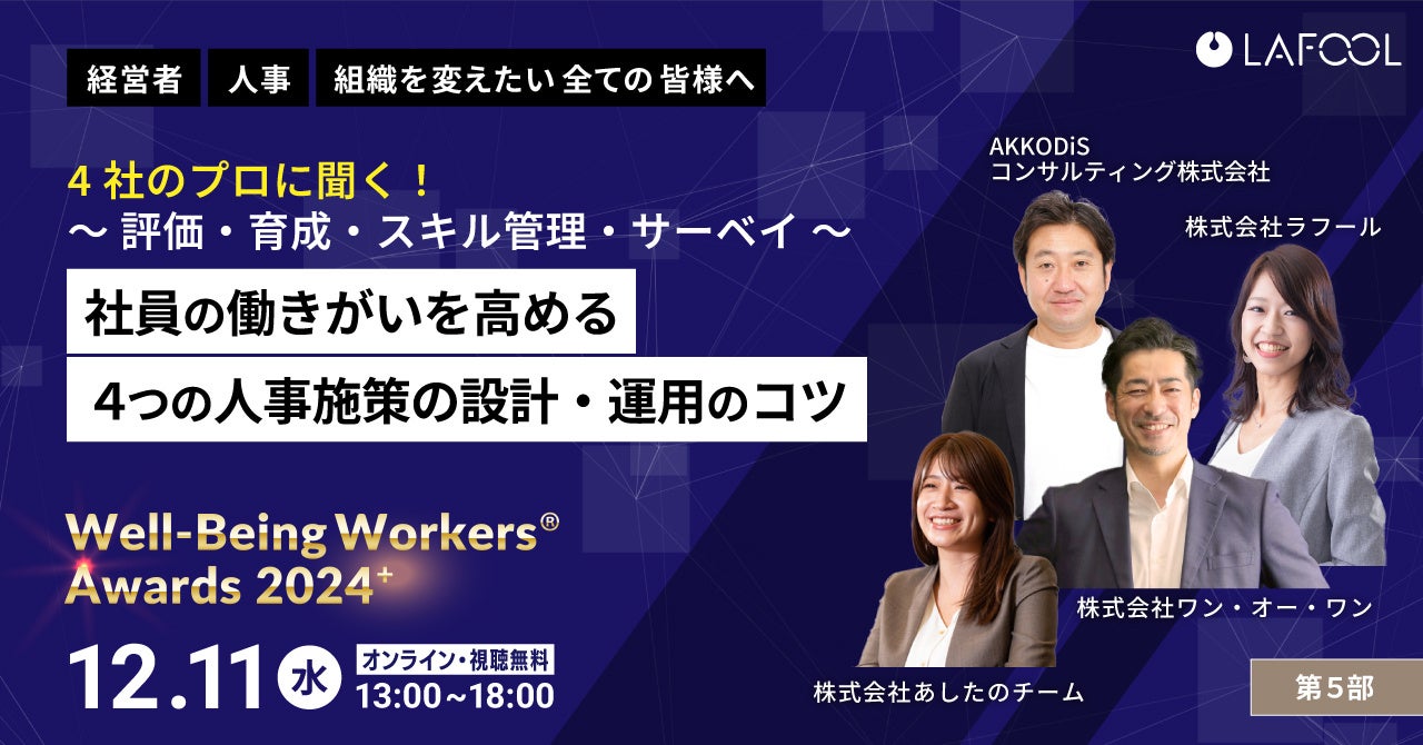 ラフール主催『Well-Being Workers®︎ Awards 2024+』、「社員の働きがいを高める4つの人事施策の設計・運用のコツ」をテーマとした講演が決定