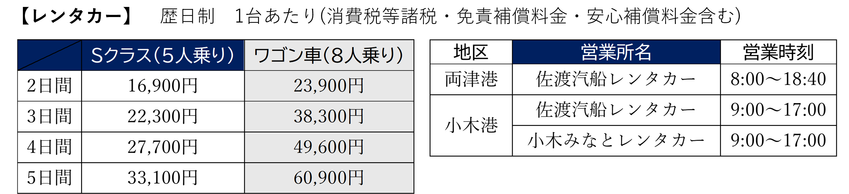 レンタカー営業時間内での受付-返却となります。