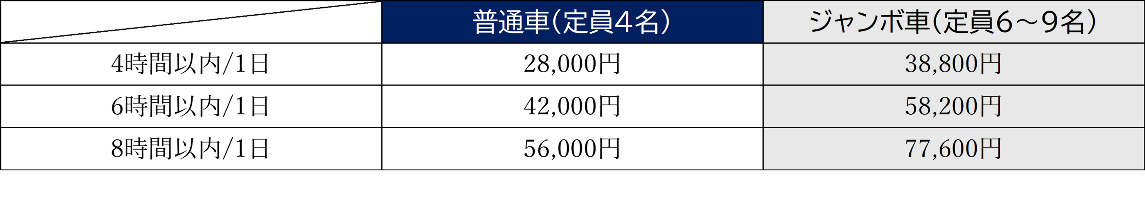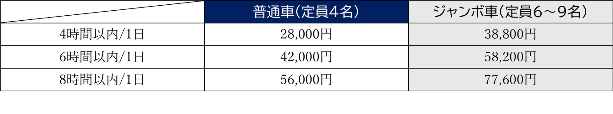 ※ジャンボ車はインターネット予約を承っておりません。予約時にお問い合わせください。