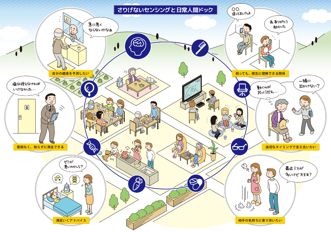 誰もが生きがいを持って毎日を過ごしながら、自分自身や自分の大切な家族・知人の健康を守りたい。そんな未来のありたい姿のために、今私たちがとるべきアクションは何なのか。こうした“バックキャスティング”という考え方で、色々な分野の研究者が様々な企業と多くの取り組みを行った。キーフレーズは「さりげないセンシングによる日常人間ドック」。日常生活の中で、ウェアラブルデバイスなどのセンシング機器を使って手軽にデータを蓄積し、健康状態を把握しながら、適切なアドバイスや対処法を知らせて病気を未然に防ぐ。そんな仕組み作りに果敢に挑戦した。排出された尿から塩分摂取と野菜摂取のバランスがわかる「ナトカリ計」とは? 鏡の前に立つだけで現在の体調がわかる「魔法の鏡」とは? 叶えたい未来のヘルスケアに向けたヒントがあふれる一冊。