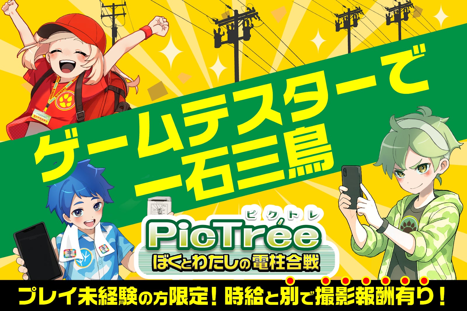 実際にゲームをプレイして、電柱を60本程撮影して感想を送っていただくだけです。