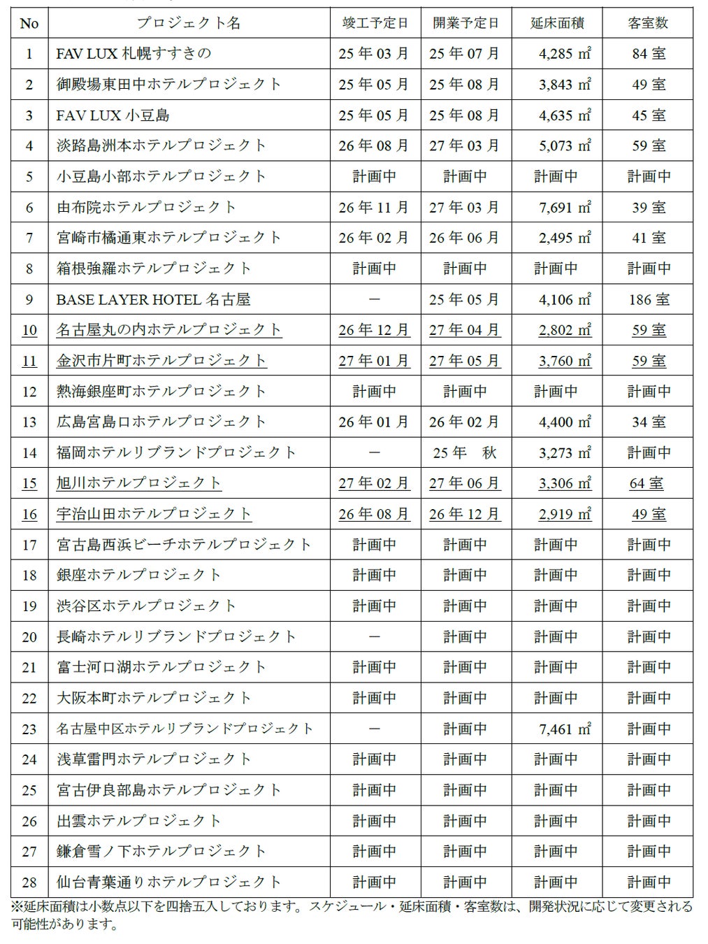 ■ホテル開発予定案件一覧