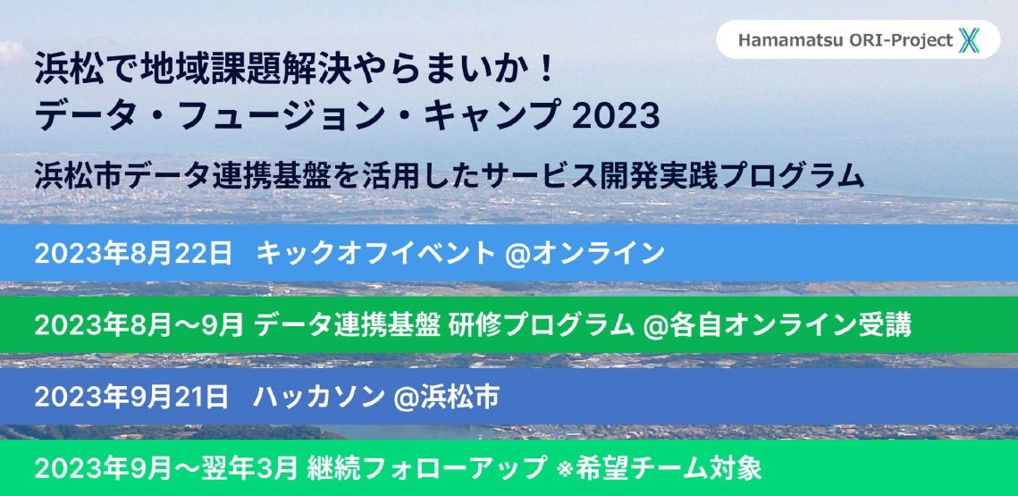 「浜松で地域課題解決やらまいか!データ・フュージョン・キャンプ 2023 ~浜松市データ連携基盤を活用したサービス開発実践プログラム~」を実施します!