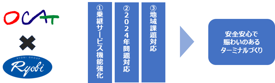 バス業界ではいよいよ4月より厚生労働省による運転者の改善基準告示の改正がなされ、いわゆる2024年問題と言われる働き方改革が推進されます。この度、バス事業に関わる弊社が西日本最大級のバスターミナルであるOCATの高速バスと観光バスの管理業務を担うことで、2024年問題の懸案事項である長距離運転時の休憩場所確保、乗継場所としての利用を促進し、バス事業者、旅行会社の課題解決を進め、お客様にとってはさらなる利便性向上を目指してまいります。