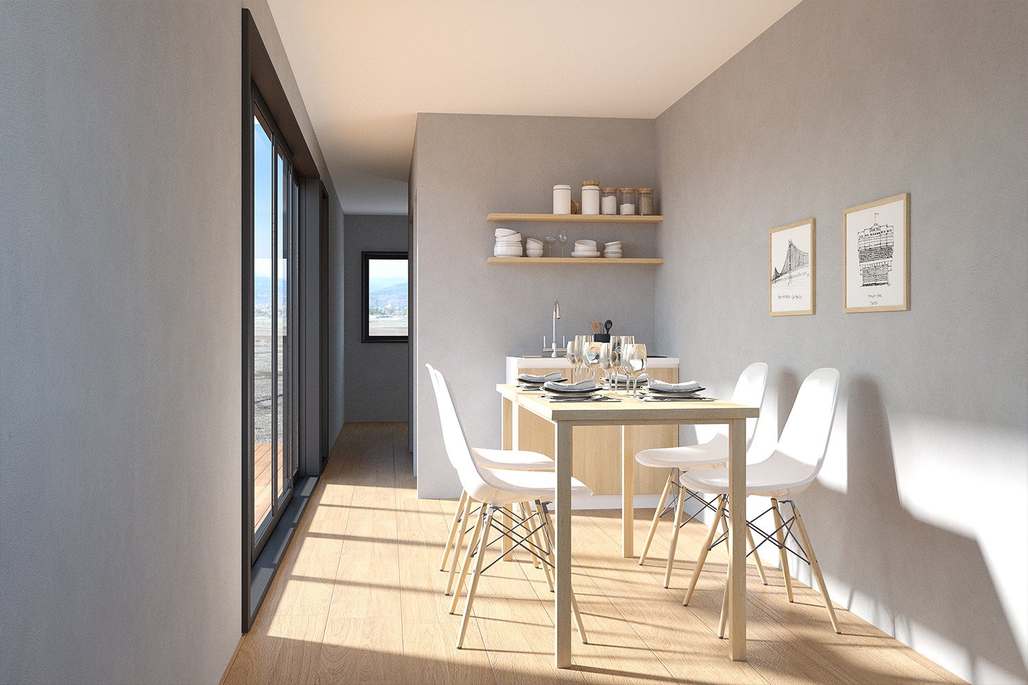 「フランクなキャンプ=フランピング」をテーマとした客室は、広々とした室内に冷暖房完備、専用のキッチン、シャワールーム、ベッドルームとまさにホテルライクな快適空間が広がります。