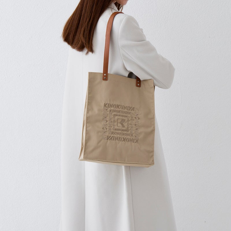A4サイズの対応の縦型タイプのトートバッグ。合皮ハンドルと、刺繍されたロゴで上品さがあり、肩掛けしやすデザインです。お買い物はもちろん、通勤や休日のお出かけまで幅広いシーンでお使いいただけます。