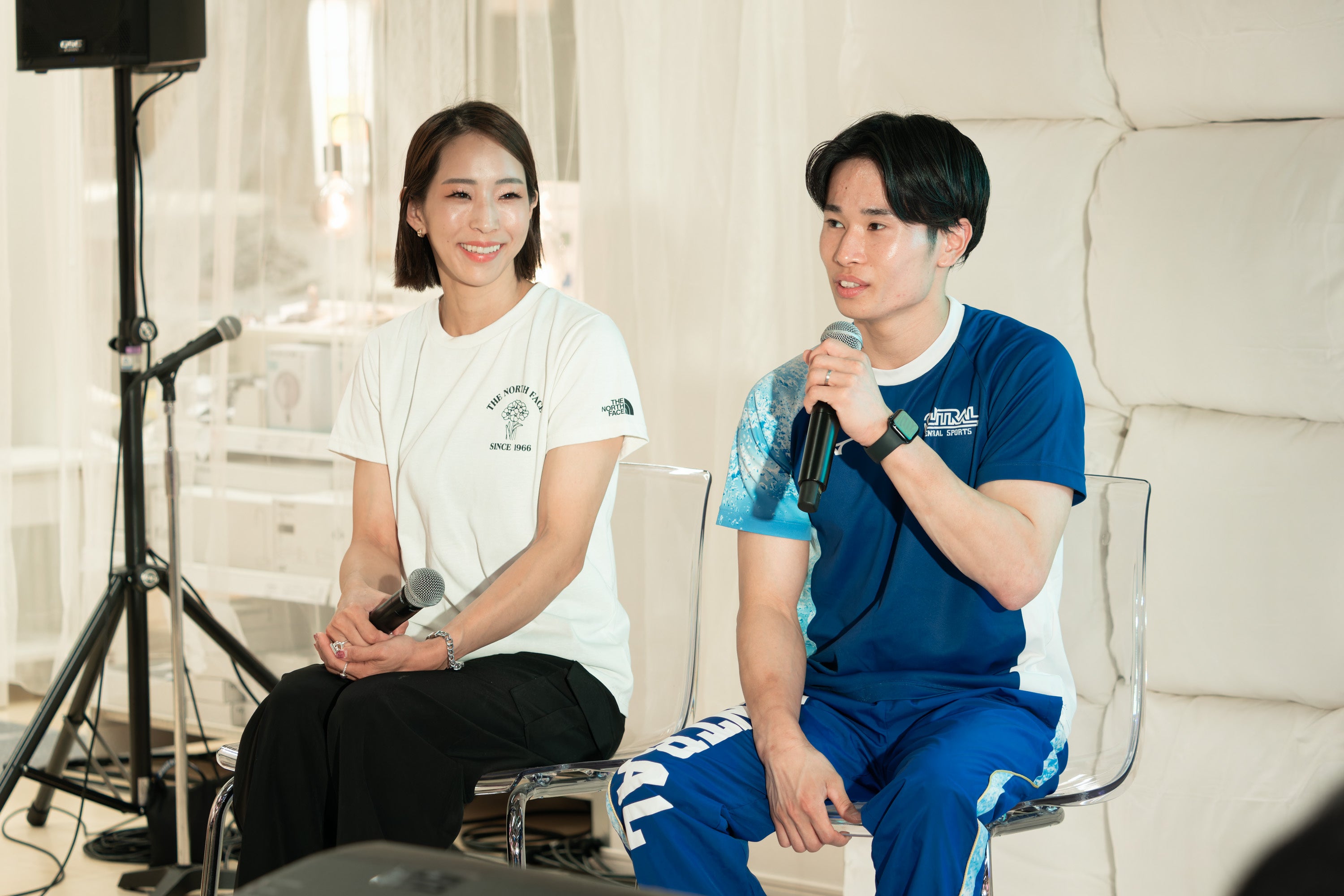 メダリストの萱和選手と野口氏、睡眠のエキスパート枝川教授が各自の睡眠環境を振り返り、暮らしと睡眠の関係について紹介