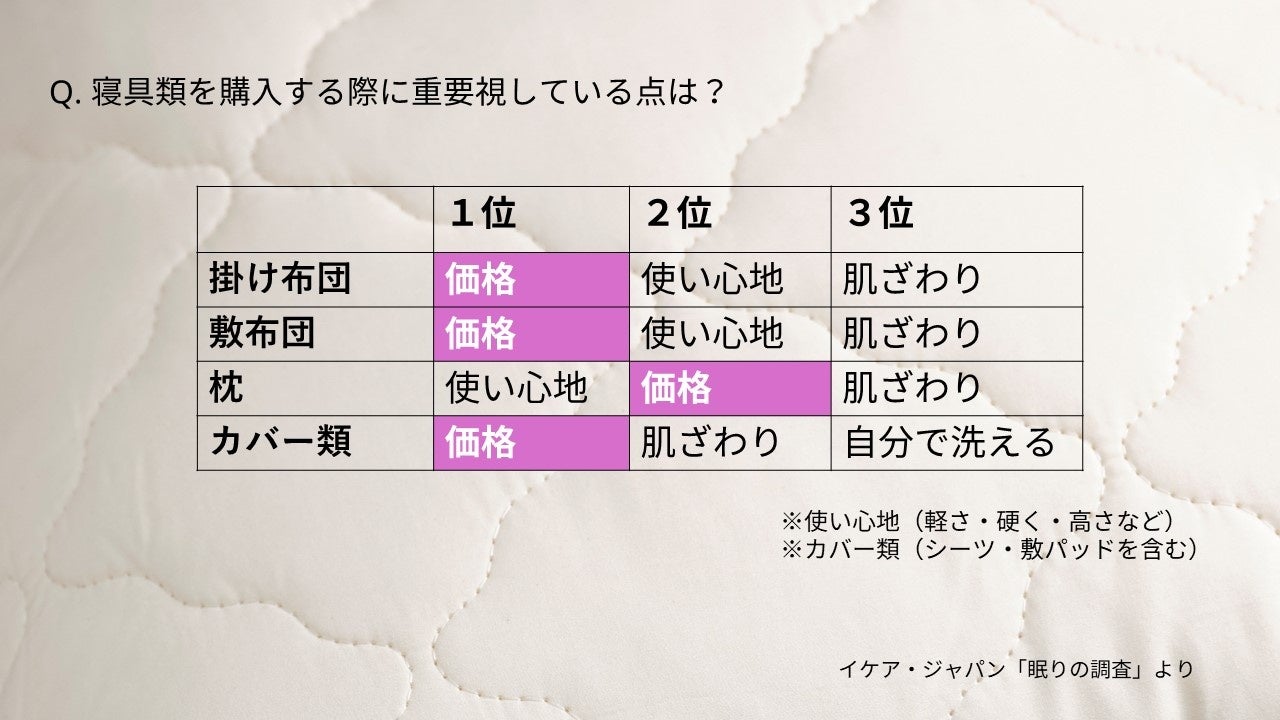 物価高の中、寝具類の購入で重視するのは使い心地だけでなく価格も重要