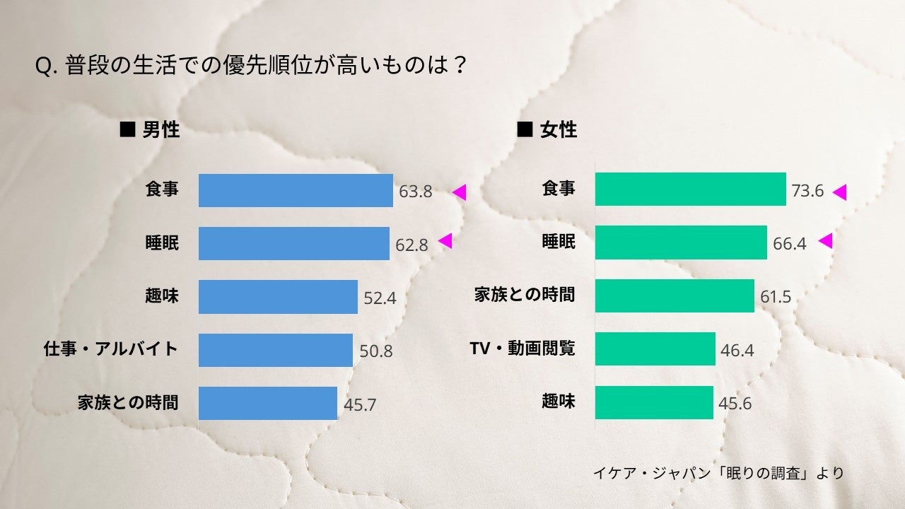 暮らしにおける睡眠の優先度は2番目に高い
