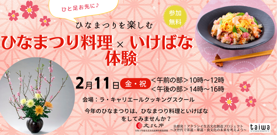 【その②(食×華道)】イベント名:ひと足早くひなまつりを楽しむ、ひなまつり料理×いけばな体験