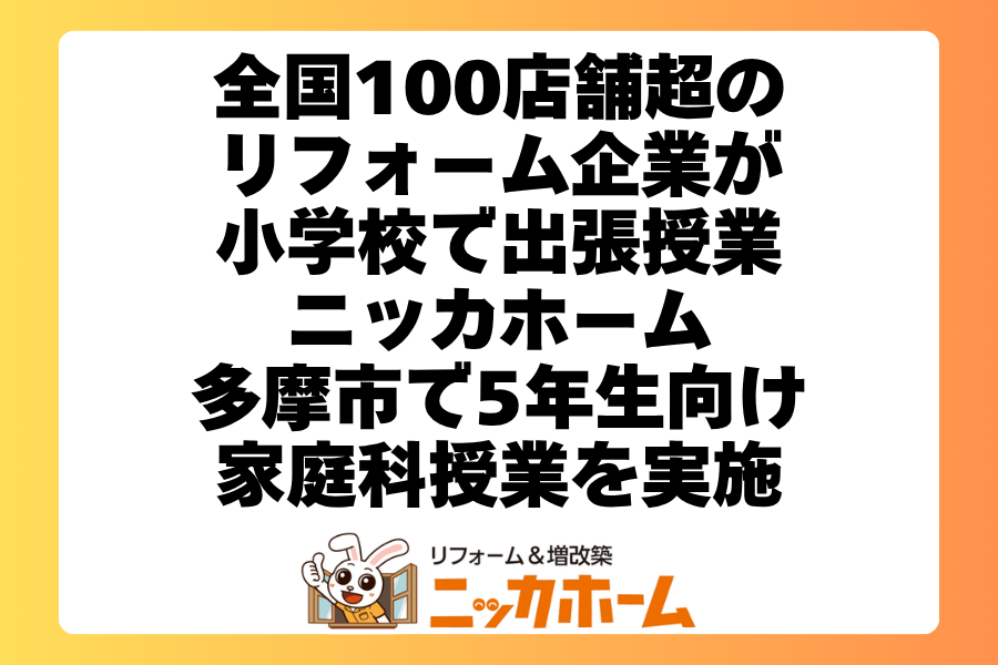 【全国100店舗超のリフォーム企業が小学校で出張授業】ニッカホーム、多摩市で5年生向け家庭科授業を実施
