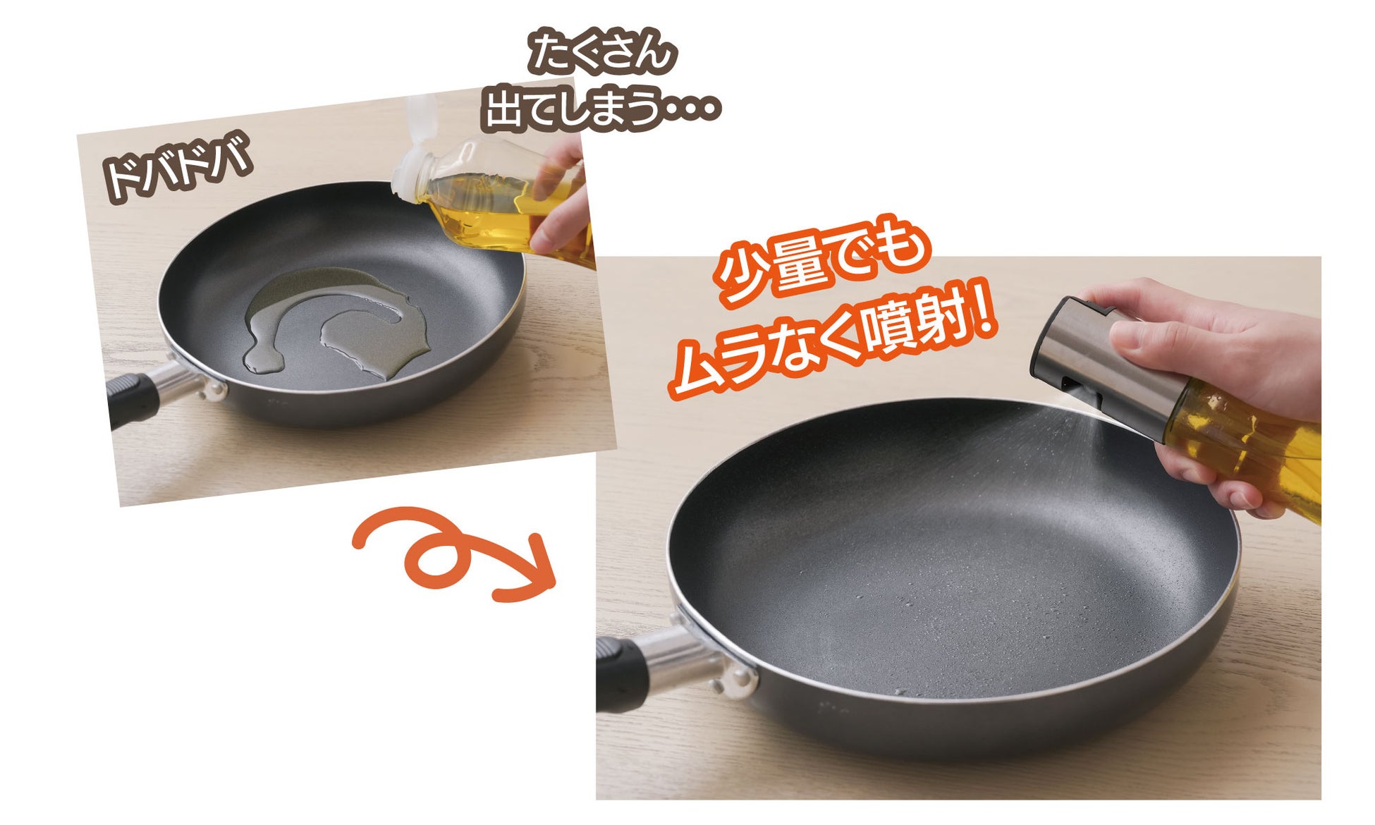 スプレー噴射でかけ過ぎやムラを防ぐ!オイルカットでカラダもお財布もヘルシーに。
