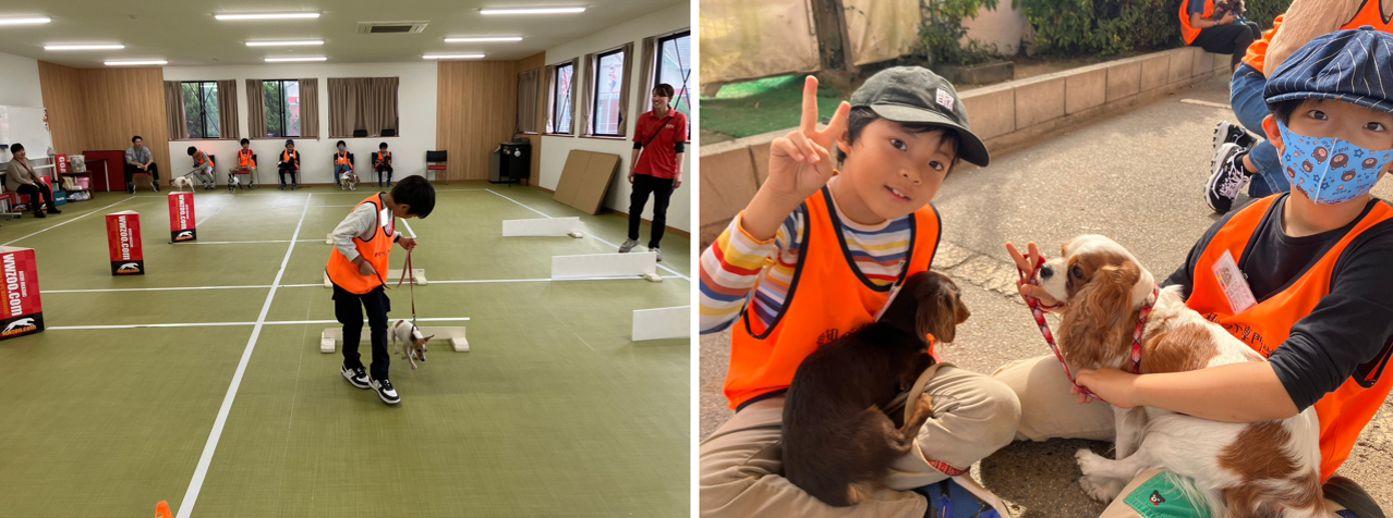 救助犬としてのトレーニングだけではなく、お散歩やふれあい、エサやりも行います。帰る日には寂しくて泣いてしまうお子様もいるほど、ワンちゃんへの愛情が深まる3日を過ごせます。