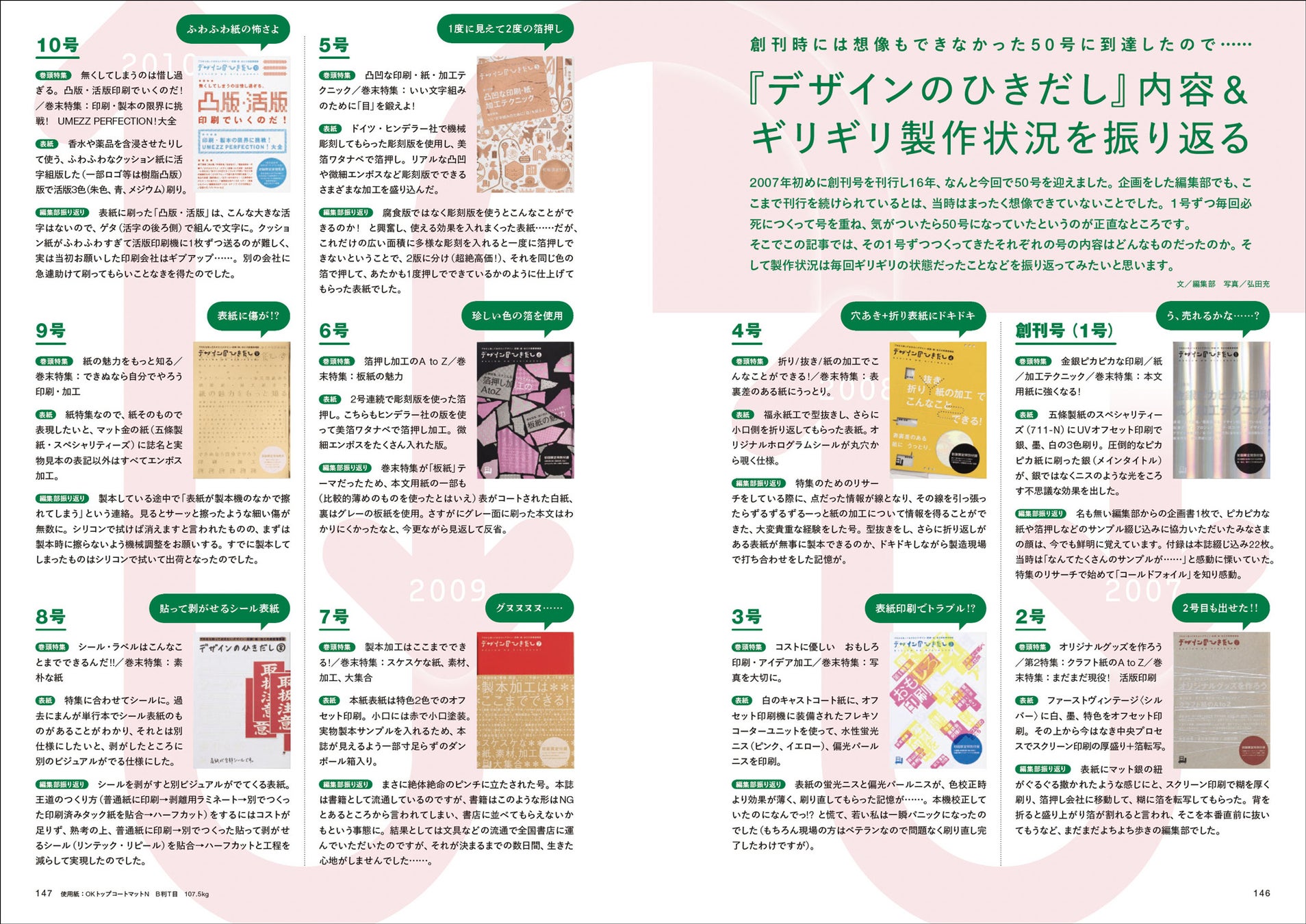 2007年初めに創刊号を刊行し16年! 50号に到達した記念に、創刊から49号分までの各表紙とともにそれぞれの号の内容はどんなものだったのかを振り返ります。手に汗握る毎回ギリギリの製作状況なども掲載!