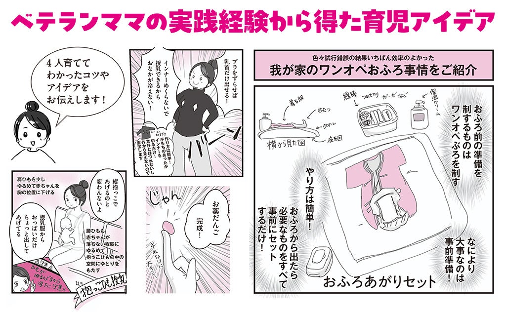 4人の子を育てた経験から得た、育児アイデアも惜しみなく公開。困ったときに役立つヒントがいっぱいです。