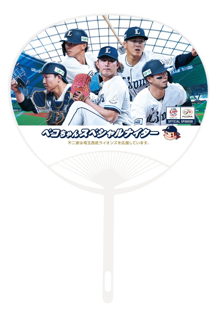 熱気あふれる試合応援中の暑さ対策にピッタリ。ぜひご来場いただき、ペコちゃんスペシャルナイターでしか受け取れないオリジナルの枝付きうちわをお受け取りください。